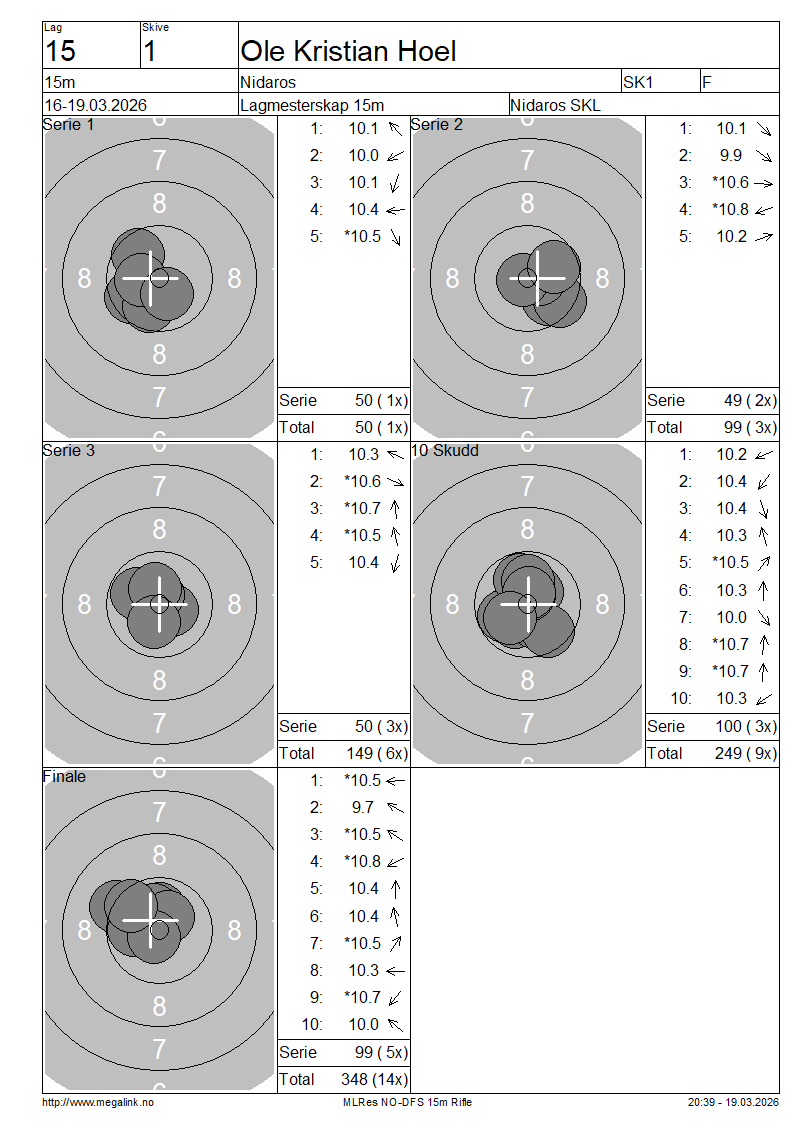 | 1 | Ole Kristian Hoel | Nidaros | SK1 | F | |||||||||||||||||||||||||||||||||||||||||||