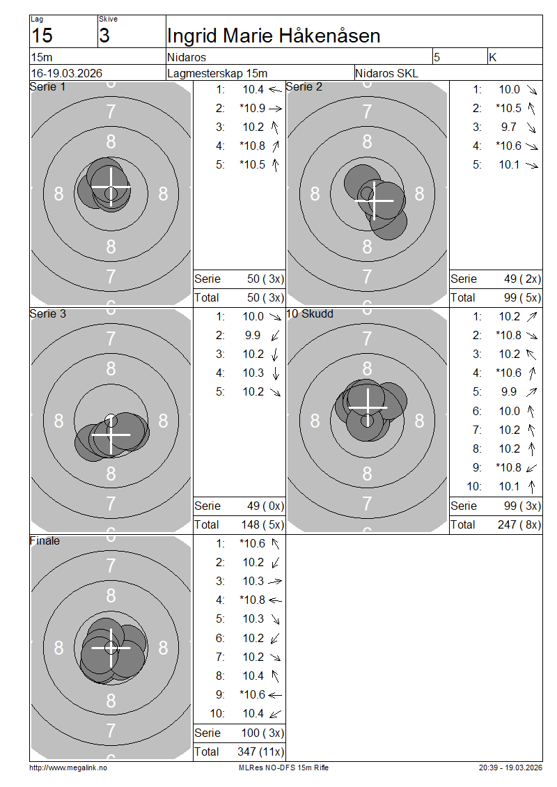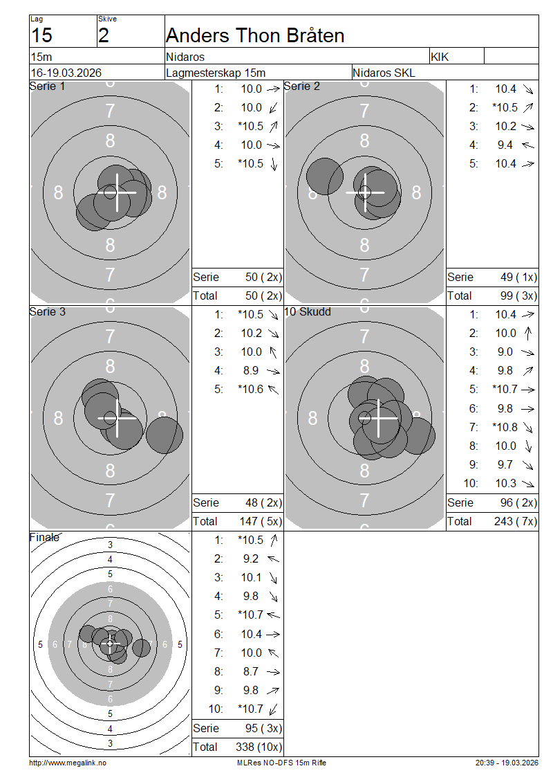 | 15 Skudd | 149 | 25 Skudd | 249 | 35 Skudd | 348 | ||||||||||||||||||||||||||||||||||||||||||