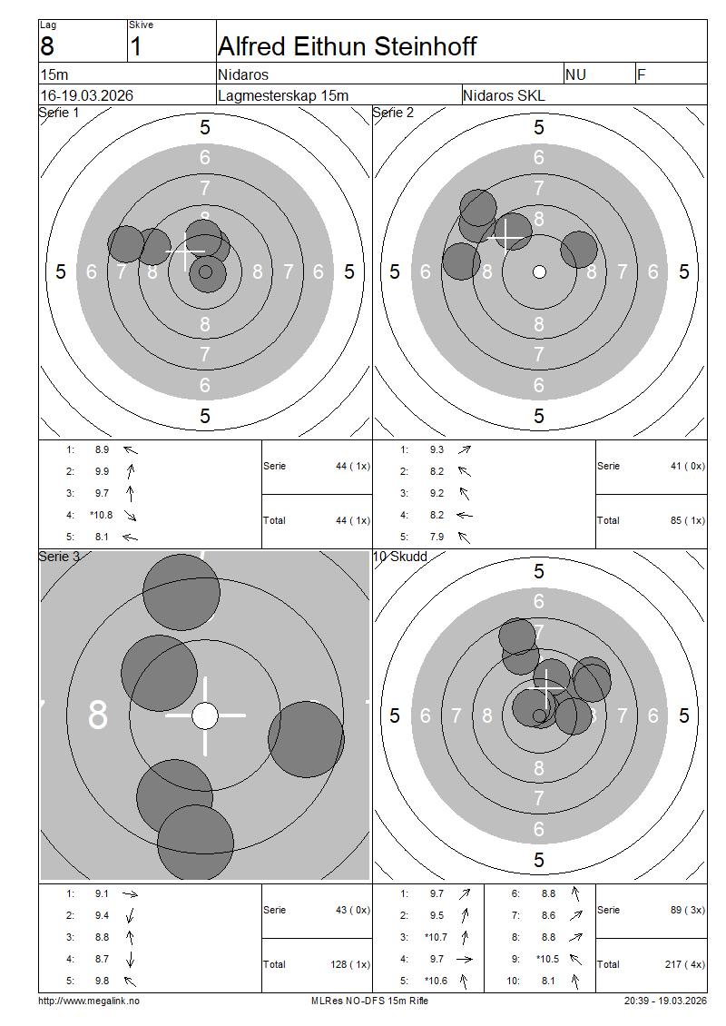| 15 Skudd | 128 | 25 Skudd | 217 | 35 Skudd | 217 | ||||||||||||||||||||||||||||||||||||||||||