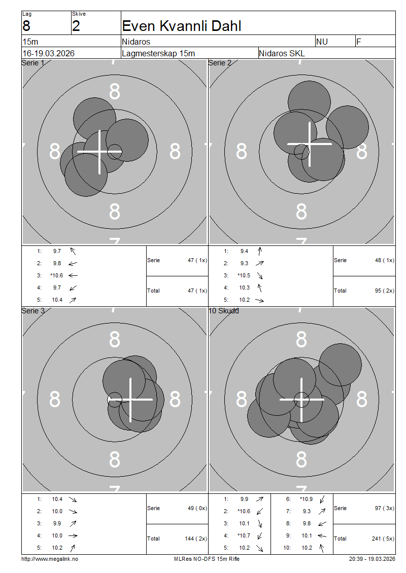 | 15 Skudd | 144 | 25 Skudd | 241 | 35 Skudd | 241 | ||||||||||||||||||||||||||||||||||||||||||