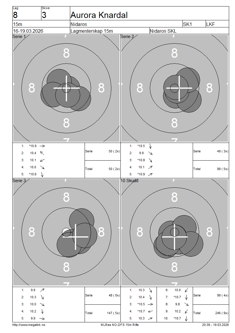 | 15 Skudd | 147 | 25 Skudd | 246 | 35 Skudd | 246 | ||||||||||||||||||||||||||||||||||||||||||