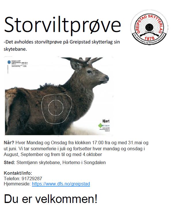 Velkommen til storviltprøve hver Mandag og Onsdag fra klokken 17:00 fra og med 31.mai og ut juni. Vi tar sommerferie i juli og fortsetter hver mandag og onsdag i