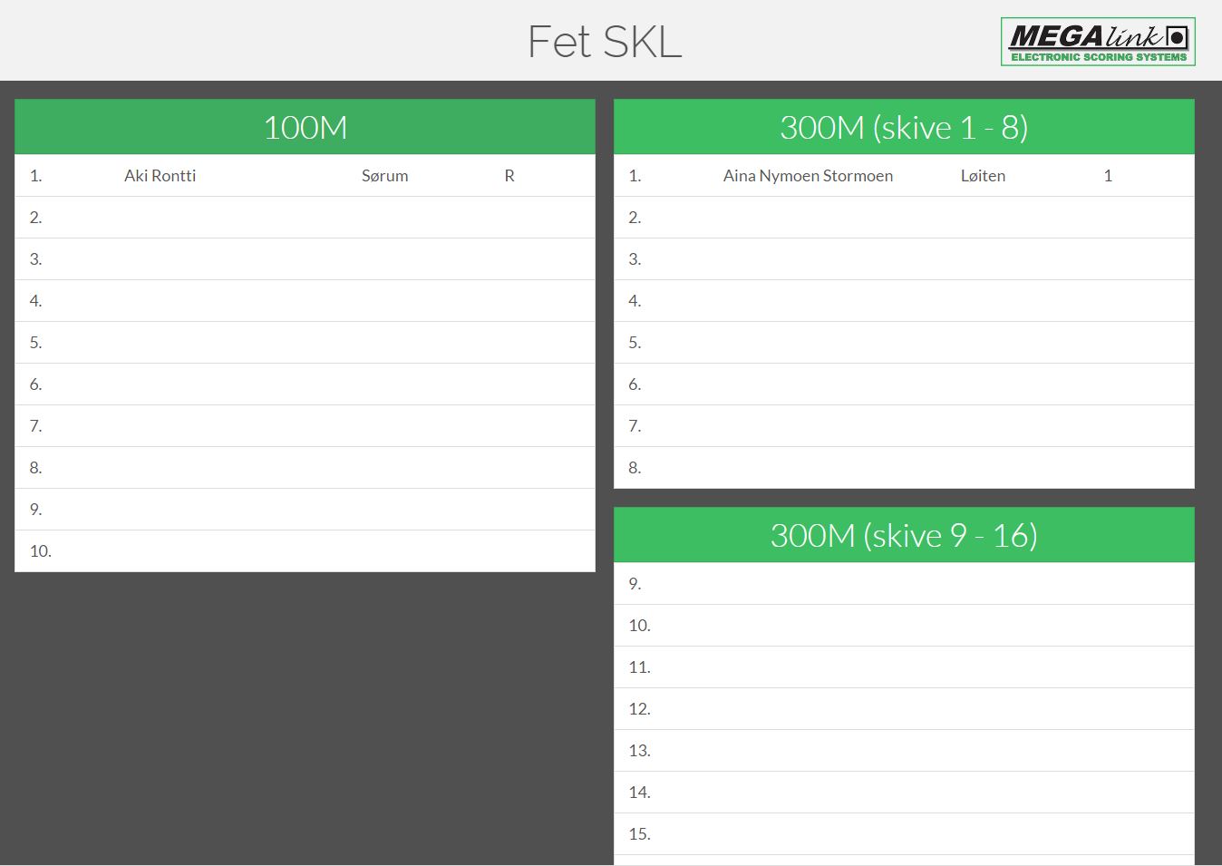 Grafisk visning av skytterne i aksjon under aktuelle stevne. Velg om du vil følge skyttere på 100...