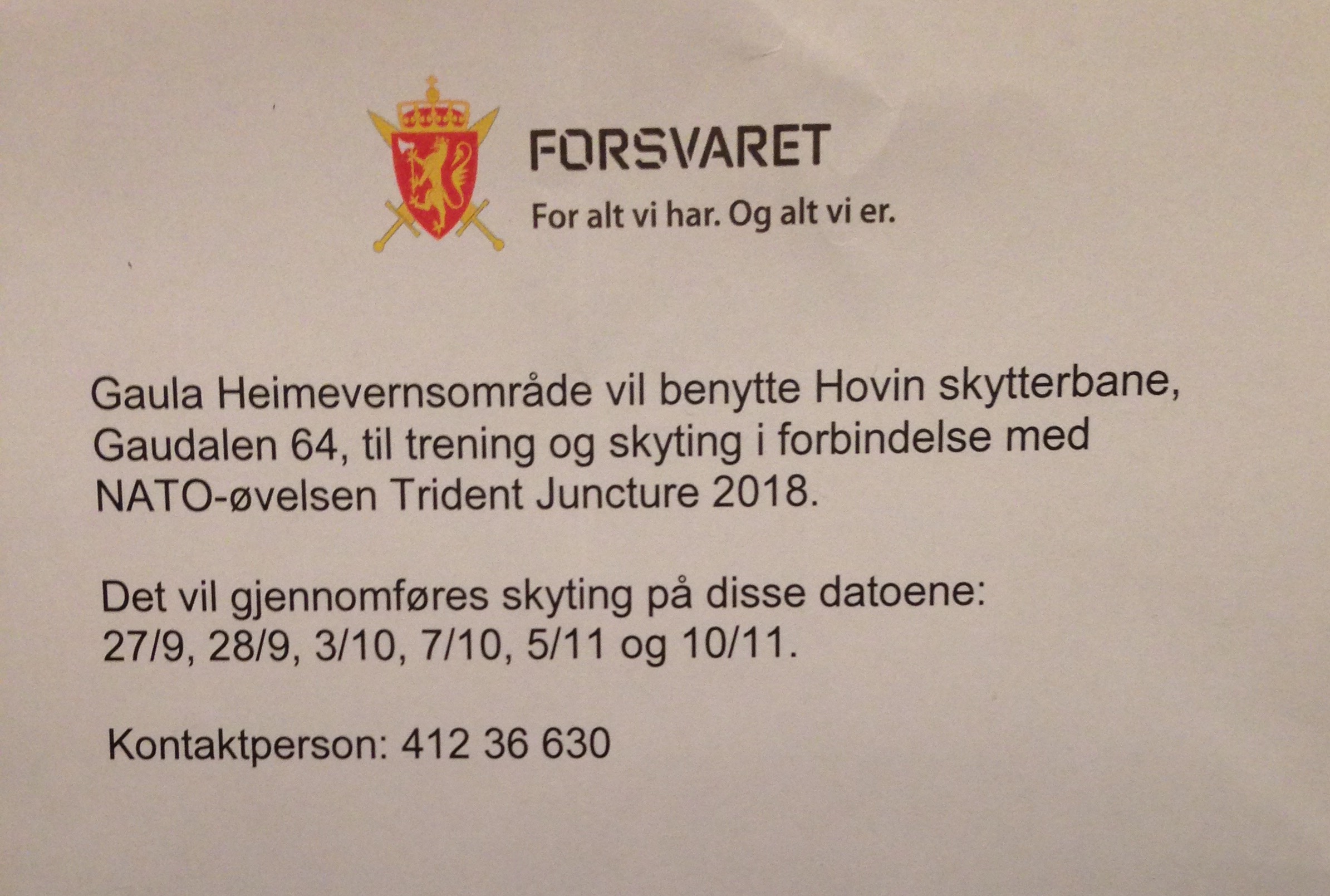 Forsvaret kommer å låner skytterbanen.