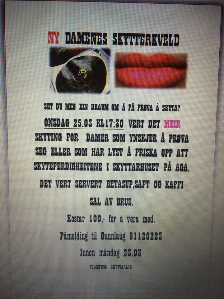 Vil du begynna med skyting? Ungdomsgruppa inviterer dei som vil prøva skyting (frå 5. klasse og...