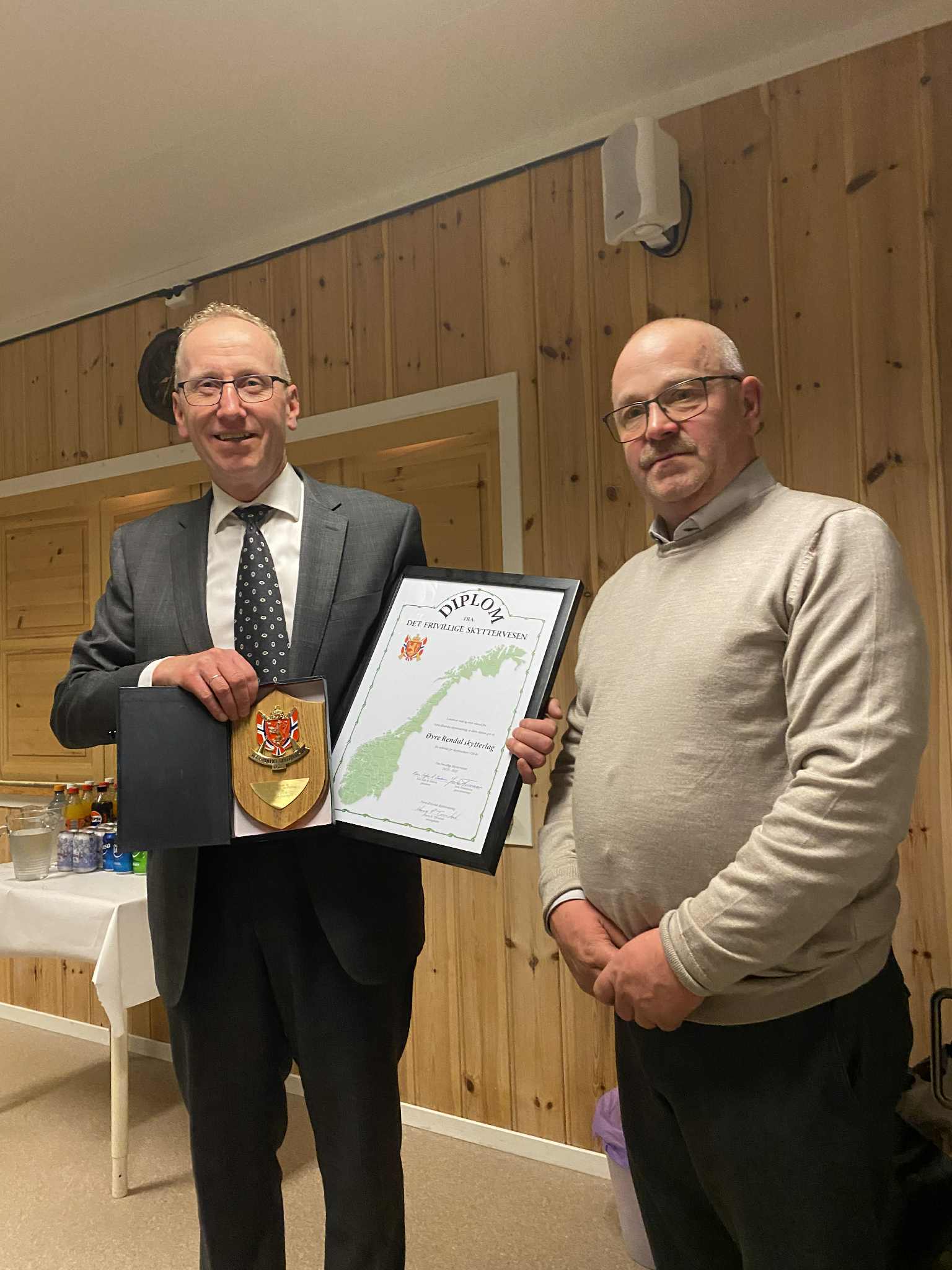 Leder Tore Hornseth mottar utmerkelse fra DFS og skyttersamlaget v/ Rune Westberg