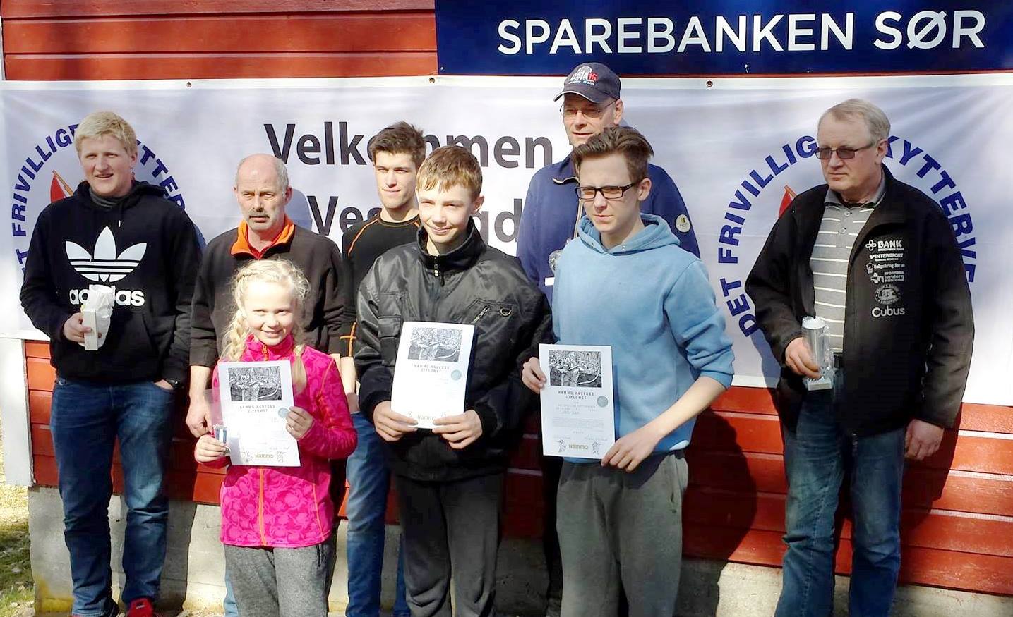 19 (!) av våre skyttere var denne helgen i aksjon på Samlagsstevne i feltskyting. Blant ungdommene vant Mina W. Møll rekruttklassen, Jonas S. Øksendal vant eldre rekrutt foran Tommy Lie Hortman og Karen S. Øksendal ble nr. 2 i juniorklassen to treff bak Marius Rinde fra Farsund. Mange av ungdommene fikk prøvd seg med finaleskyting også, og her er et bilde av Holums egen ungdomsheiagjeng på plass i skogen i Byremo -og heier på hverandre.