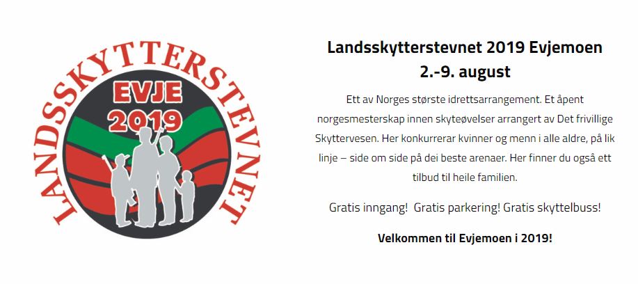 Dersom det er aktuelt med overnatting på Evje kan man lese seg opp her: https://ls2019.com/innkvartering/skyttercamp/ om muligheter for Camp og andre alternativer, men med nærheten til arena for LS i år er det nok mest sannsynlig ikke aktuelt.