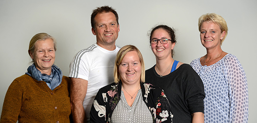 Bak fv: Ørjar Eiken, Ida Kristiansen og Nina Granlund. Foran fv: Marianne Borge og Kari Sofie Brøndbo Fiskum.