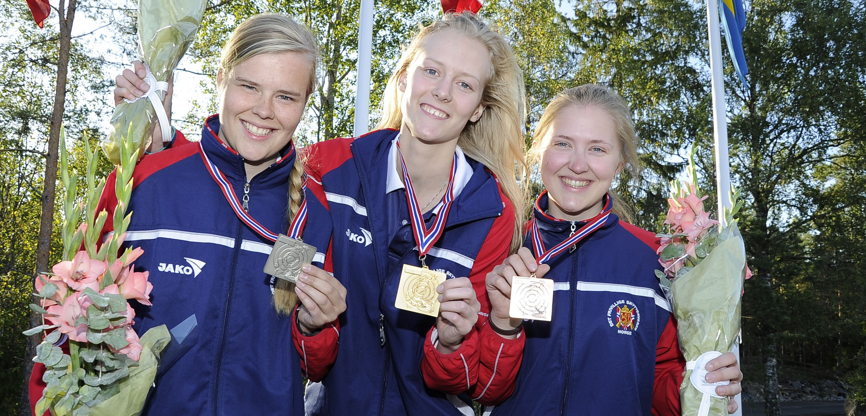 Lise Margrethe Rinde tok nordisk gull i ungdomsklassen på Nordisk mesterskap. Til venstre sølvvinner Anette Thingbø og til høyre bronsevinner Kristin Dyrendahl.