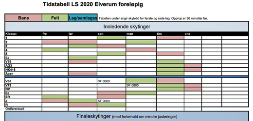 Skytetider for LS 2019 er nå klare. Her finner du blant annet skytetider, resultater, skytekort,...