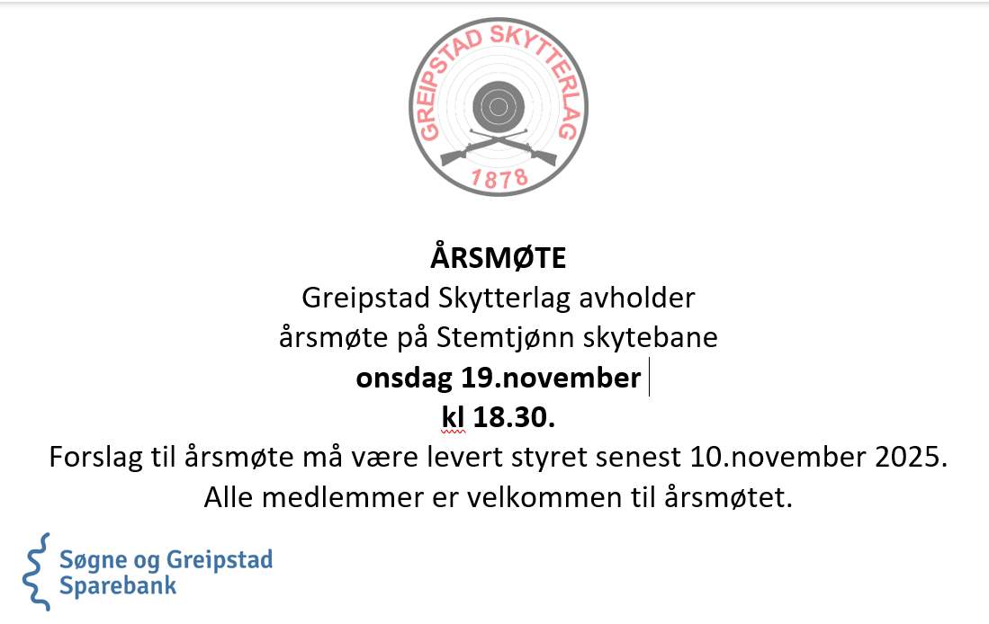 Årsmøtet 2025 avholdes 19.november kl.18.30 på skytterhuset på Stemtjønn. Forslag må være levert...