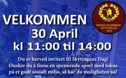 Vi ønsker alle velkommen til å prøve skyting på skytingens dag lørdag 30. april mellom kl. 11 og 14 på Størrmyrbråtan skytebane. Alle mellom 10 og 100 år kan få skyte og dere kan få informasjon om hva Frogn og Drøbak skytterlag kan tilby. Vi har utstyr til utlån.