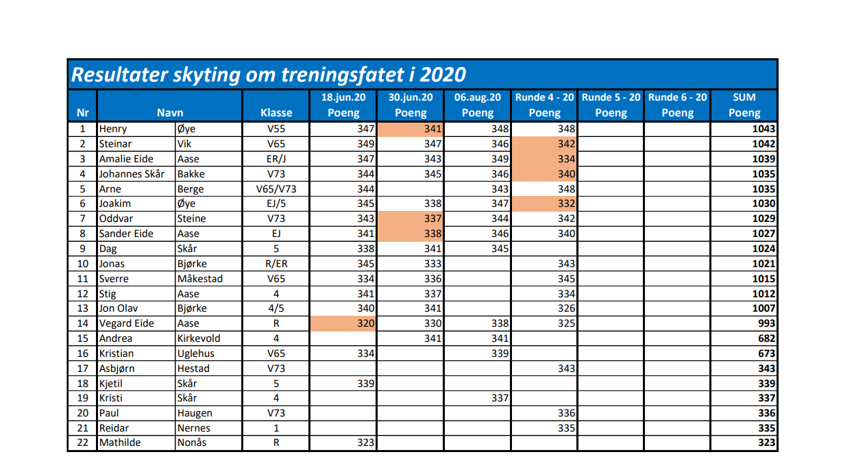 Sist haust fekk me ikkje fullført alle rundane av Podens treningsfat pga. korona-restriksjonar. Vanlegvis skyt me 6 rundar, der 4 tel samanlagt.