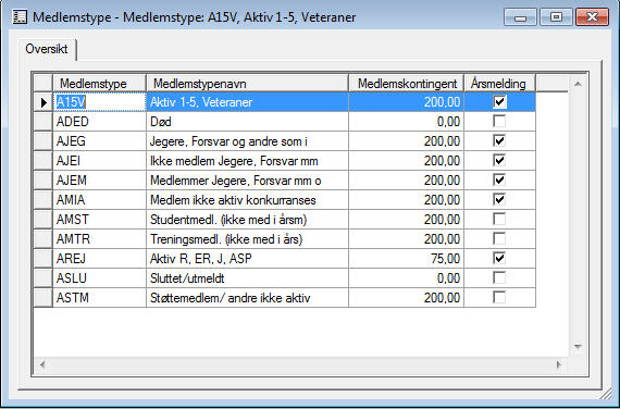 Alle medlemmer må registreres med en medlemstype. Medlemstypen brukes for å skille på medlemskontingent og for om medlemmet skal med på årsmelding eller ikke.