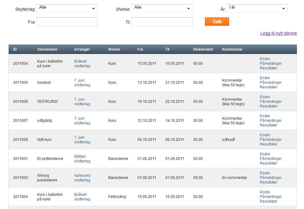 Skytterlag/samlag har også mulighet til å registrere alt av interne skytinger i den nye stevneguiden, i tillegg til all kursaktivitet.