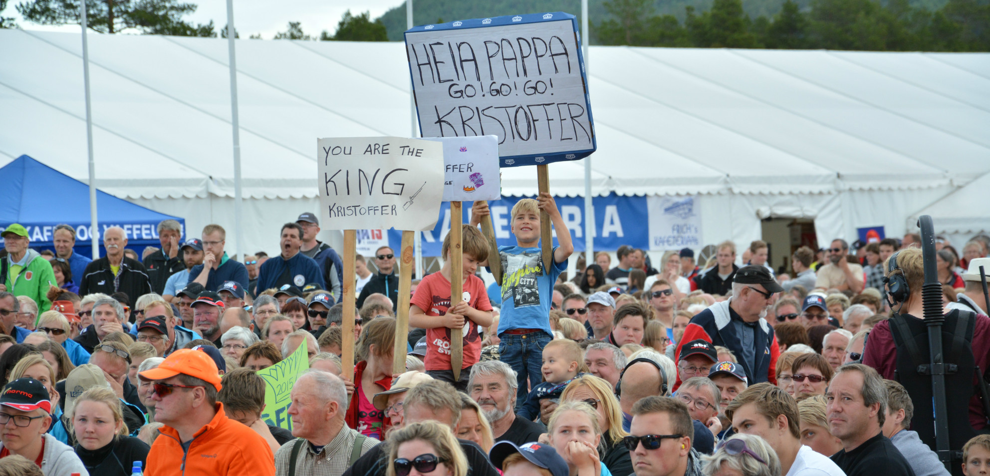 Mange i publikum hadde laget plakater for å støtte sine skyttere. |
