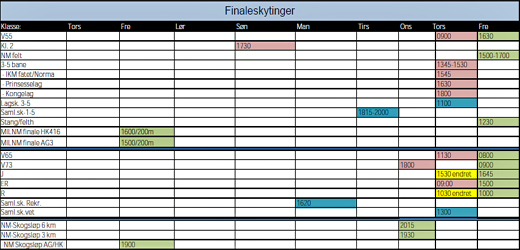 Det er besluttet at banefinaler for Junior og Rekrutt skal bytte skytetider. Det vil si at rekrutt skyter sin finale torsdag kl. 10:30 og Junior torsdag kl. 15:30. Oppropslister på web er oppdatert med disse tidene.